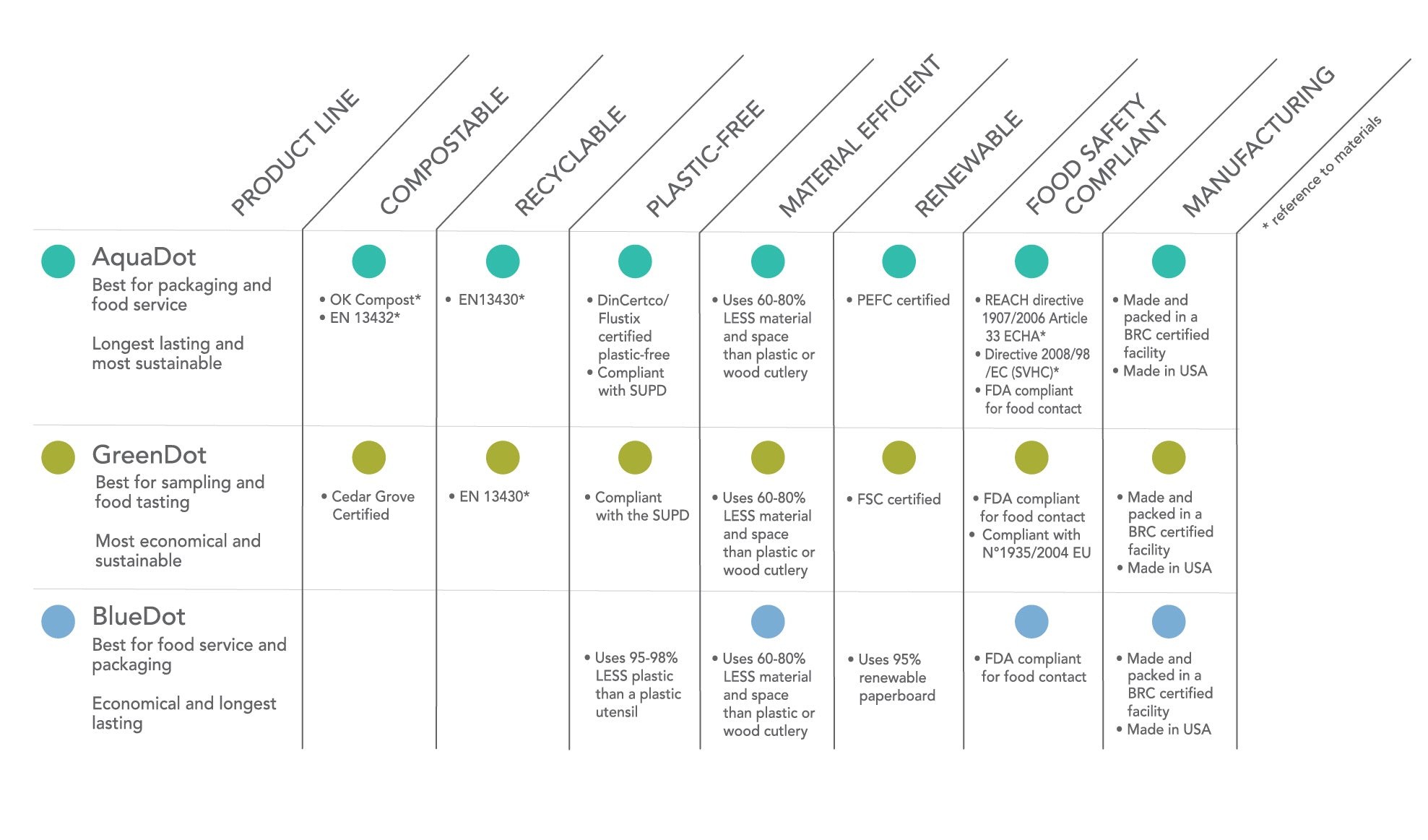 The EcoTensil BlueDot line is made from the longer lasting BlueDot paperboard, perfect for full servings.